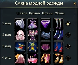 (комбинации элементов одного или нескольких стилей) для быстрой смены внешнего вида вашего персонажа. Первоначально доступно 12 ячеек для стилей и 3 комплекта. 4-9 уровень вельмож открывает доступ к дополнительным ячейкам в модном рюкзаке (максимально можно увеличить количество ячеек до 48 и комплектов до 9). Вещи, помещаемые в комплекты, остаются на складе для стилей: то есть комплекты - чисто настройка, а не дополнительные ячейки для хранения.